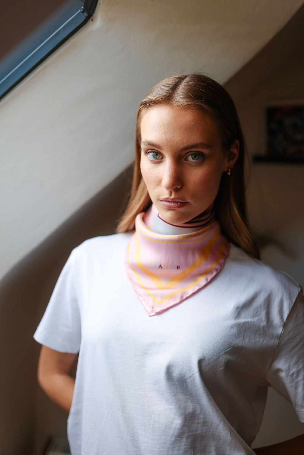 Indispensable atout à porter en journée comme en soirée, le foulard Charlotte Beaude est fabriqué à partir de soie d’Italie. D’une incontestable douceur, il se plie et se range aussi discrètement qu’il se porte élégamment au cou ou sur les cheveux ou même, laissant s’exprimer l’imagination, en haut de tenue.