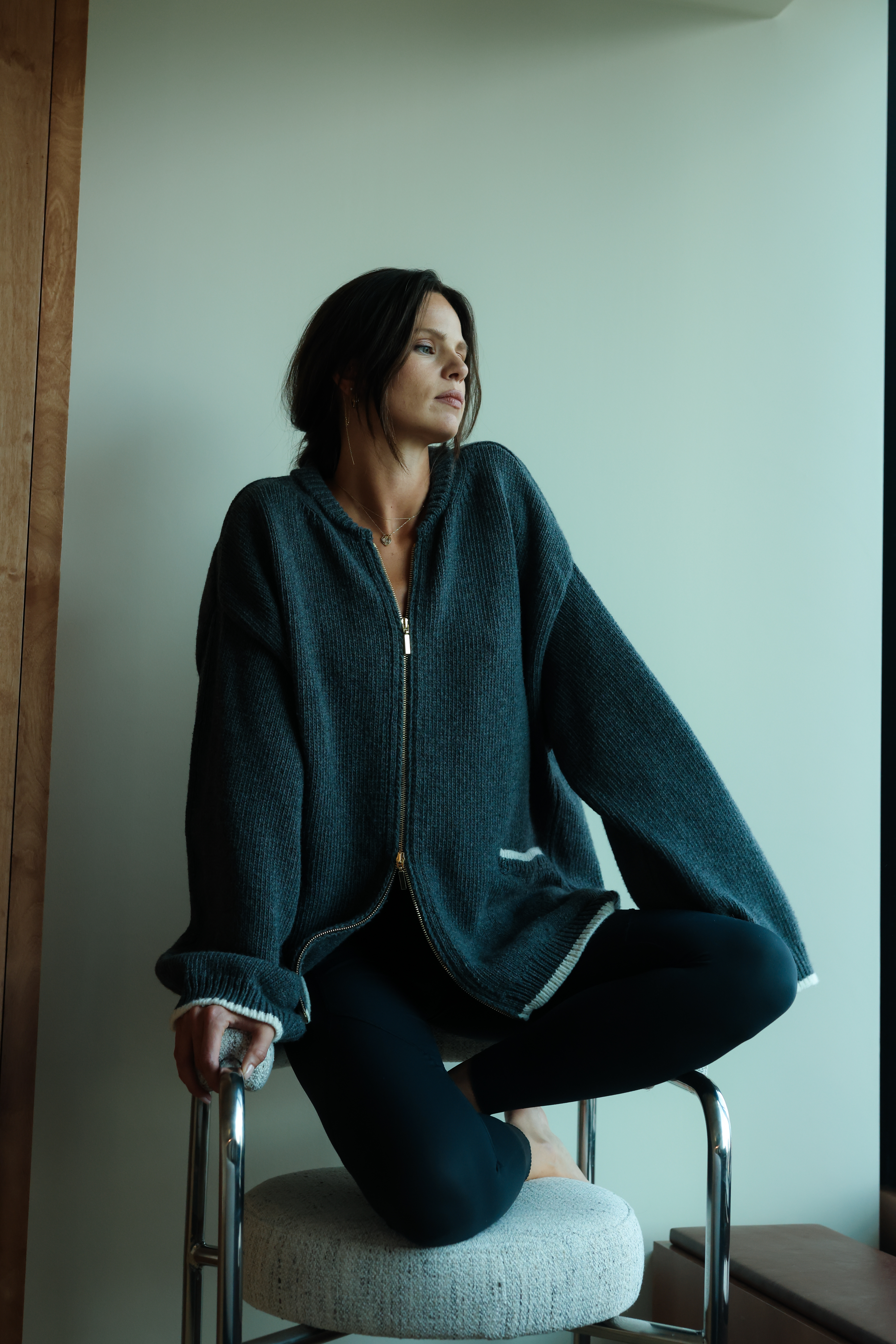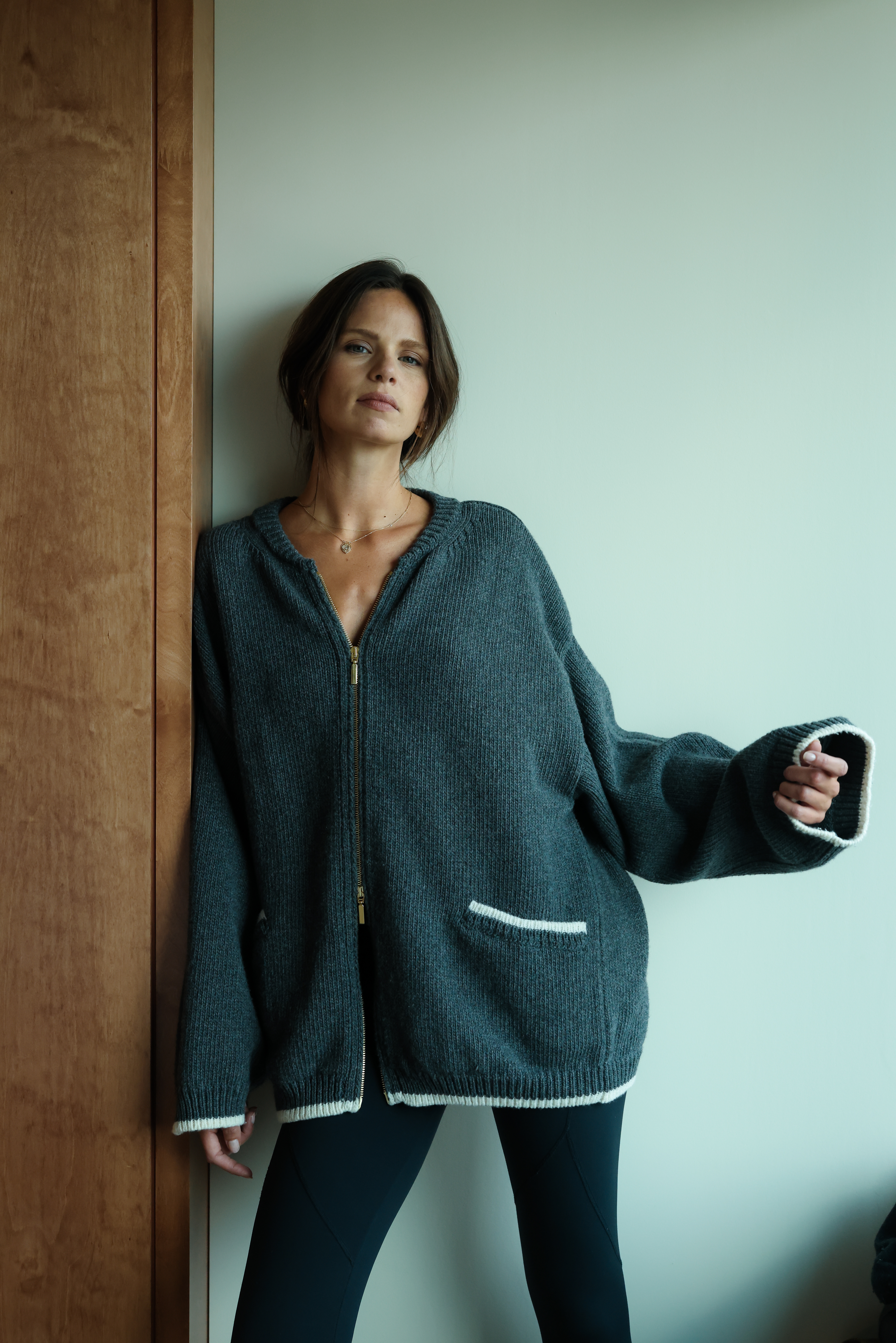 Veste zippée Oversize en 100% laine mérinos, tricotée en Belgique.
