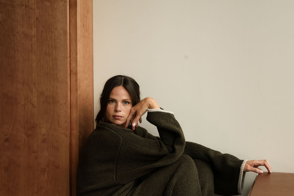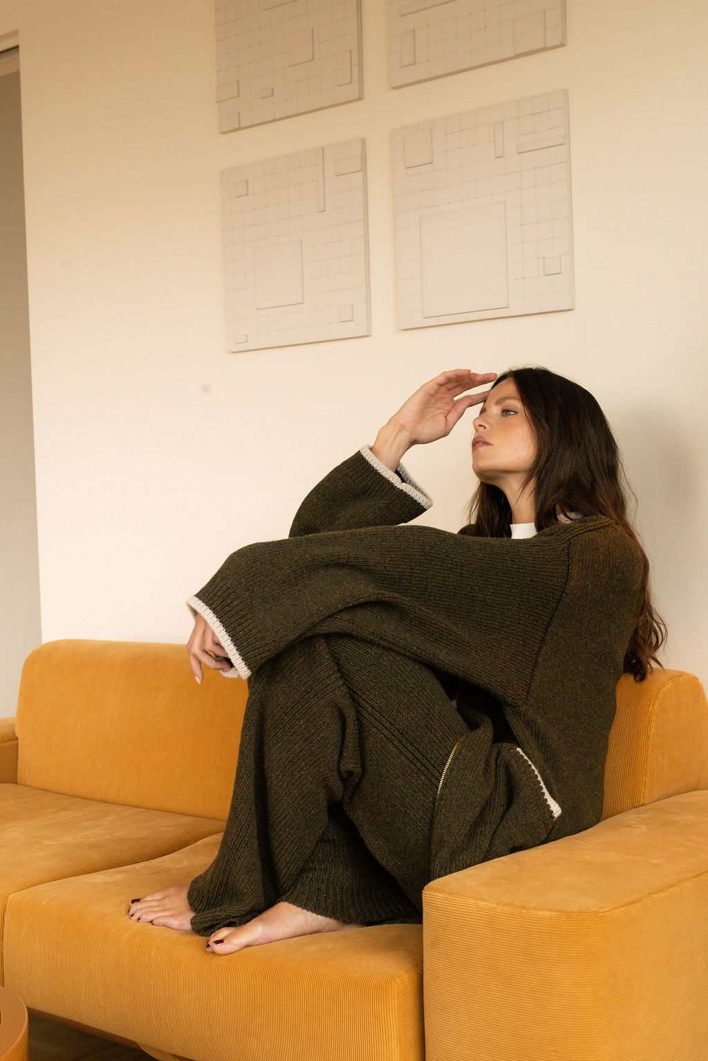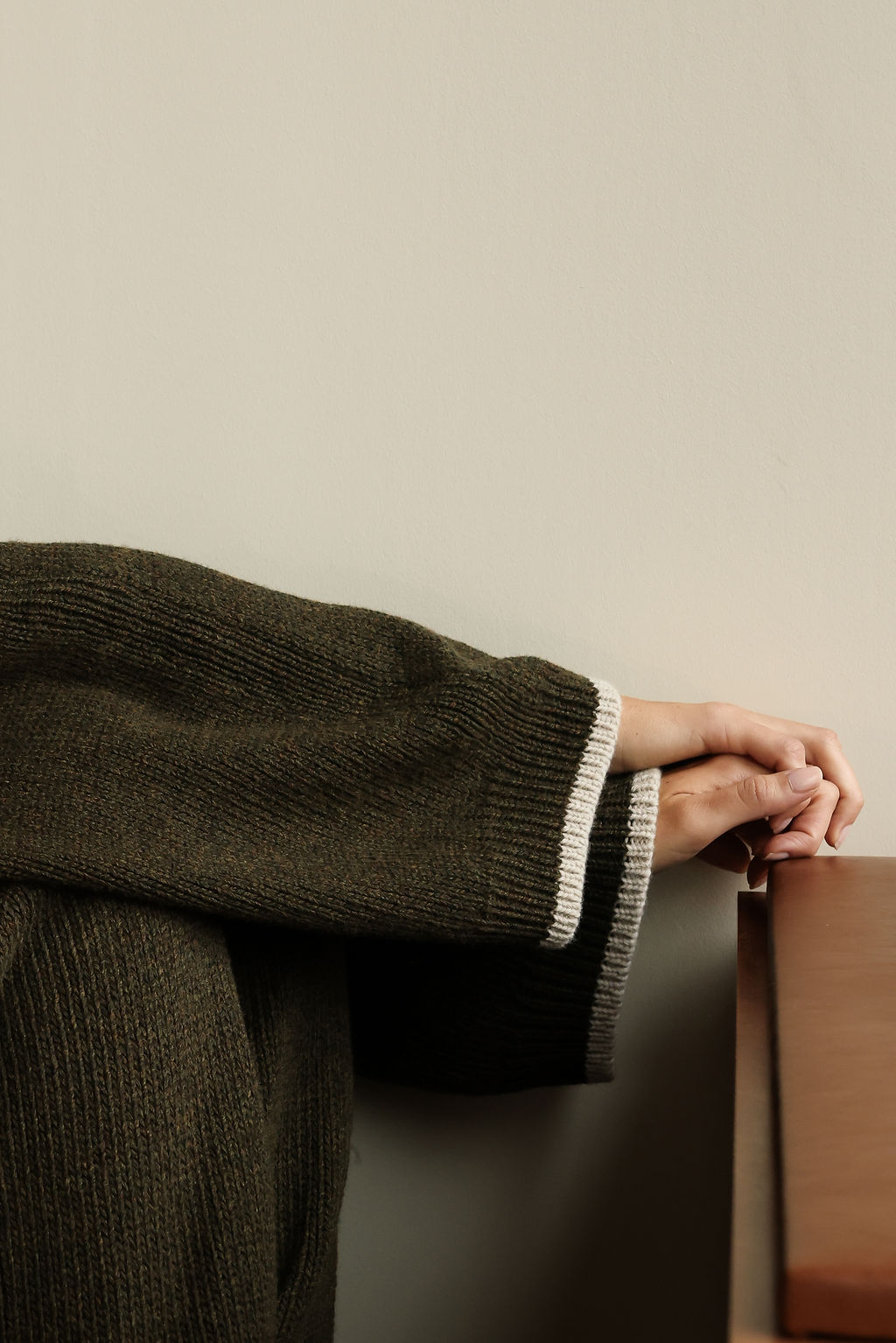 Veste zippée Oversize en 100% laine mérinos, tricotée en Belgique.