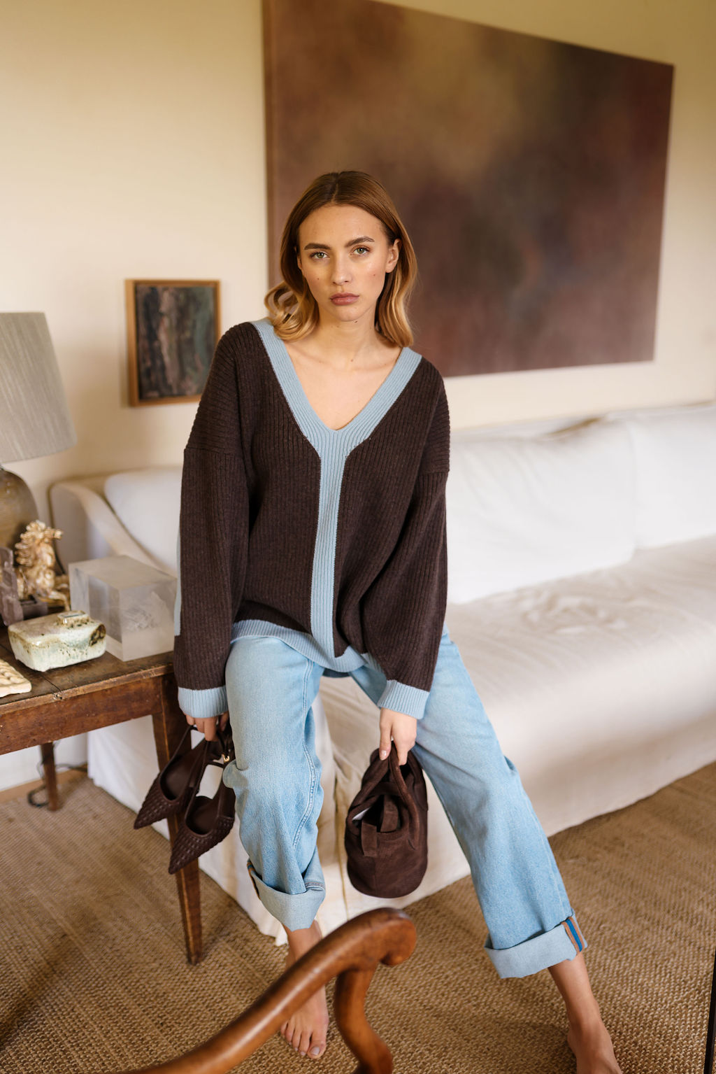 Le pull Oran signe le grand retour du col V dans une version résolument moderne et élégante. Inspiré du cardigan sans boutons, il revisite ce classique avec une approche épurée et contemporaine.
