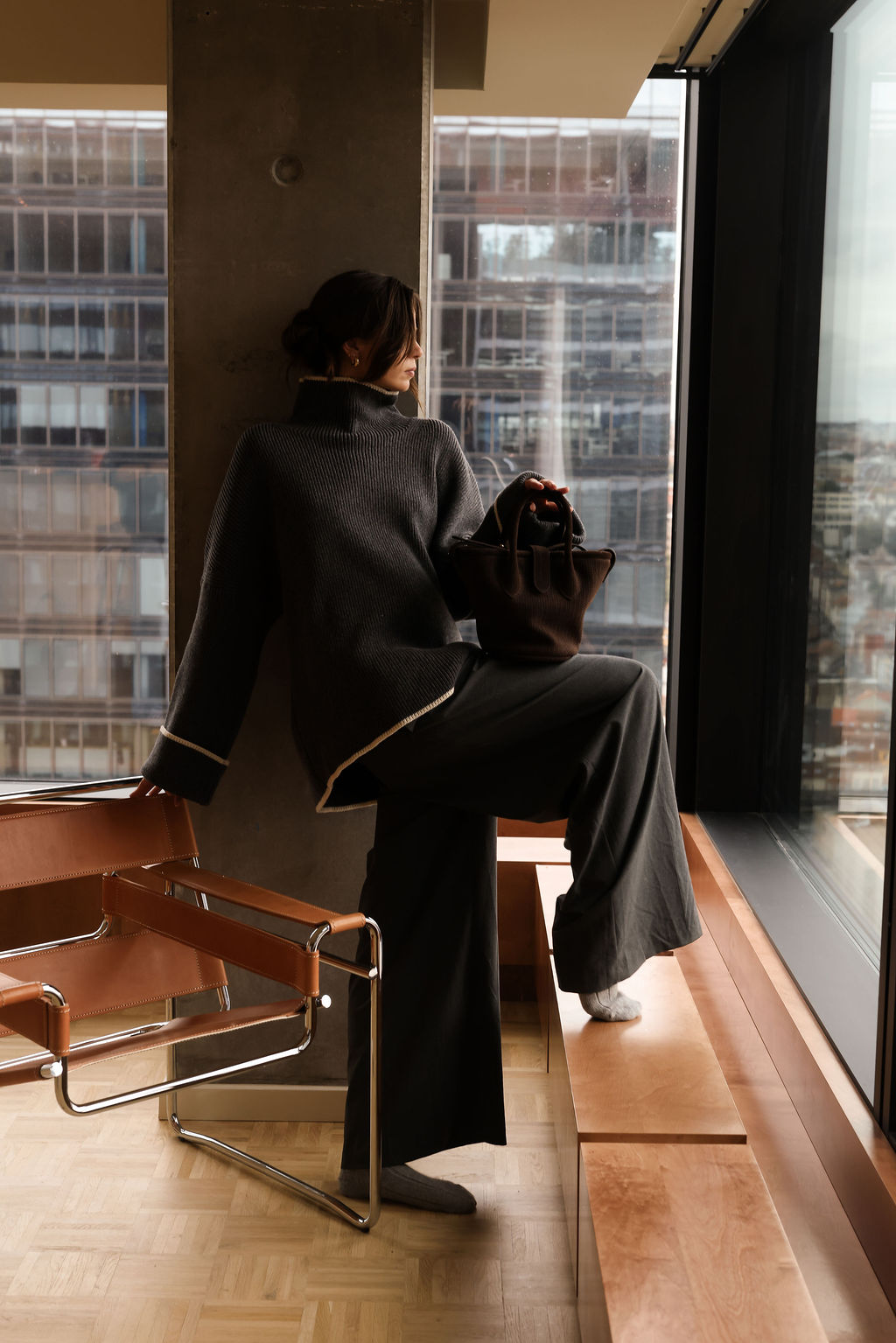 MATIÈRE: Daim embossé et doublure tissu soyeux gris clair