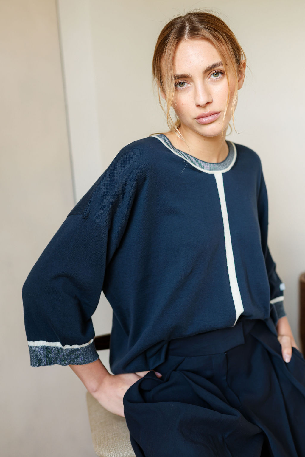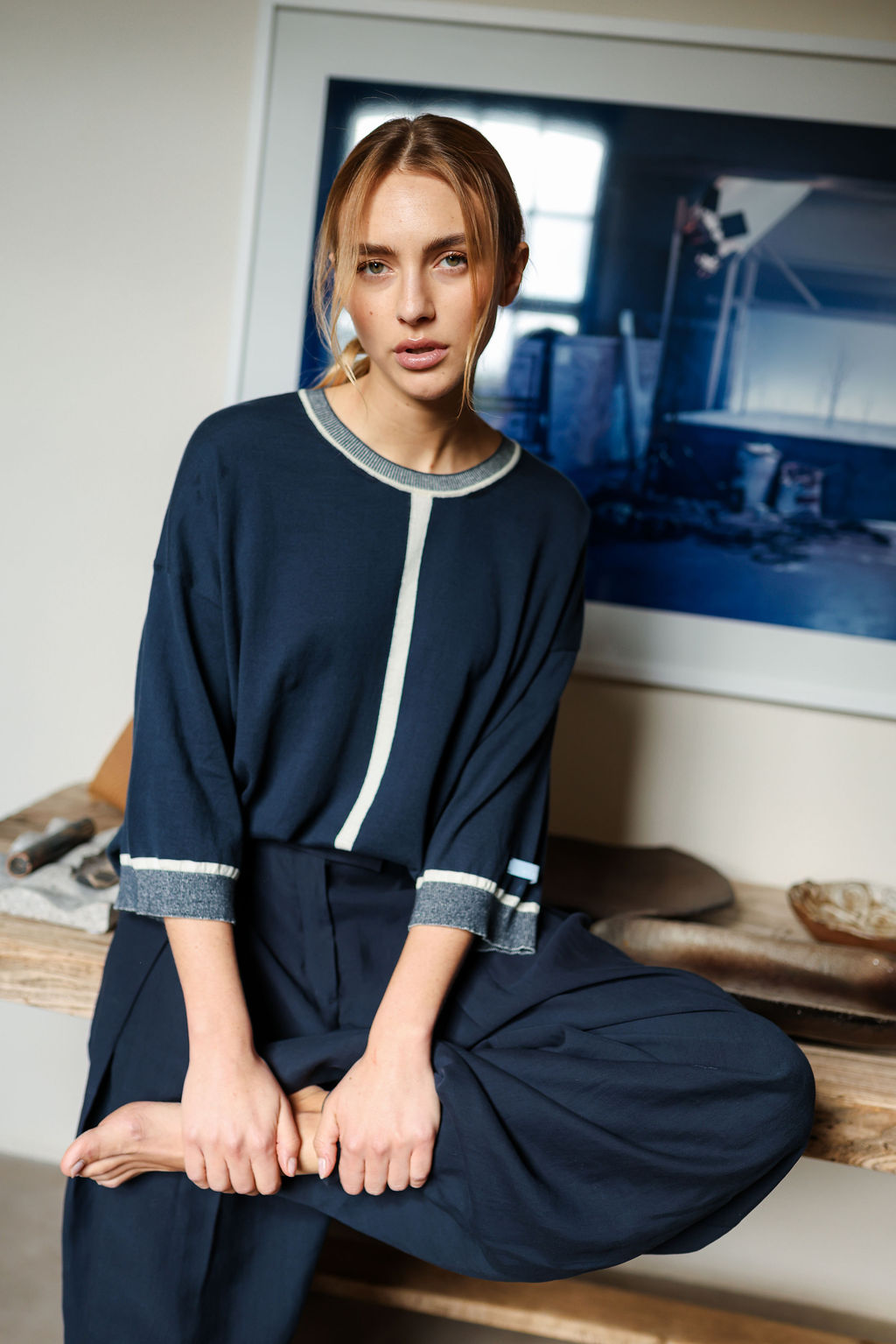 Tricoté en 100% coton, Paloma est léger et agréable à porter lorsque les températures montent. Sa coupe ample et ses couleurs lumineuses en font une pièce facile à vivre, aussi élégante que décontractée.