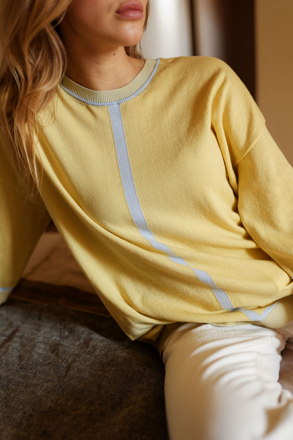 Tricoté en 100% coton, Paloma est léger et agréable à porter lorsque les températures montent. Sa coupe ample et ses couleurs lumineuses en font une pièce facile à vivre, aussi élégante que décontractée.